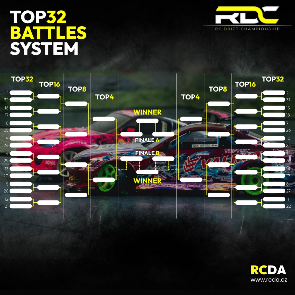 - O konečném pořadí v závodě rozhodují battly podle vyřazovacího pavouka TOP32