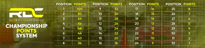 - TOP32 závodníků získávají body do šampionátu podle níže přiložené tabulky.